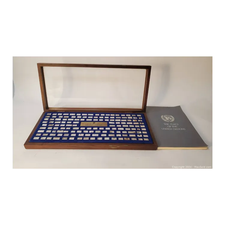 Heeft u de Franklin Mint "The Flags of the United Nations Mini-Ingot Collection" en wilt u deze verkopen? Wij kopen deze unieke collectie zilveren miniatuurbaren, waarop de vlaggen van de Verenigde Naties-lidstaten nauwkeurig zijn gegraveerd. Deze rechthoekige zilveren baren zijn vervaardigd in sterling zilver (.925) en vormen een uniek verzamelobject voor liefhebbers van numismatiek en internationale geschiedenis.