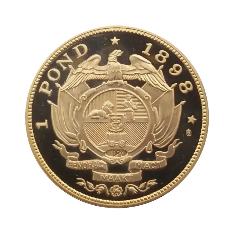 De 1 Pond Zuid-Afrika is een bekende gouden munt uit de Zuid-Afrikaanse Republiek, geslagen tussen 1892 en 1900. Deze munt heeft een totaalgewicht van 7,99 gram en bestaat uit 22 karaat goud (91,7%), wat neerkomt op een fijngewicht van 7,32 gram puur goud.