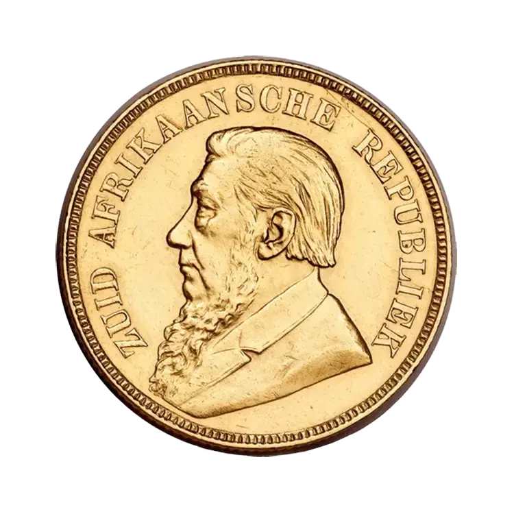 De 1 Pond Zuid-Afrika is een bekende gouden munt uit de Zuid-Afrikaanse Republiek, geslagen tussen 1892 en 1900. Deze munt heeft een totaalgewicht van 7,99 gram en bestaat uit 22 karaat goud (91,7%), wat neerkomt op een fijngewicht van 7,32 gram puur goud.1 Pond Zuid-Afrika verkopen