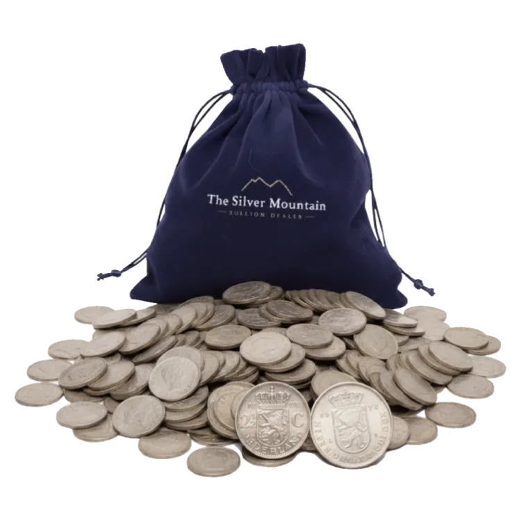 Verkoop hier uw zilver Nederlands muntgeld van 5 kilogram puur zilver. De munten zijn geslagen in 72% zilver en het brutogewicht van de zak dient dan ook 6.945 gram te wegen.