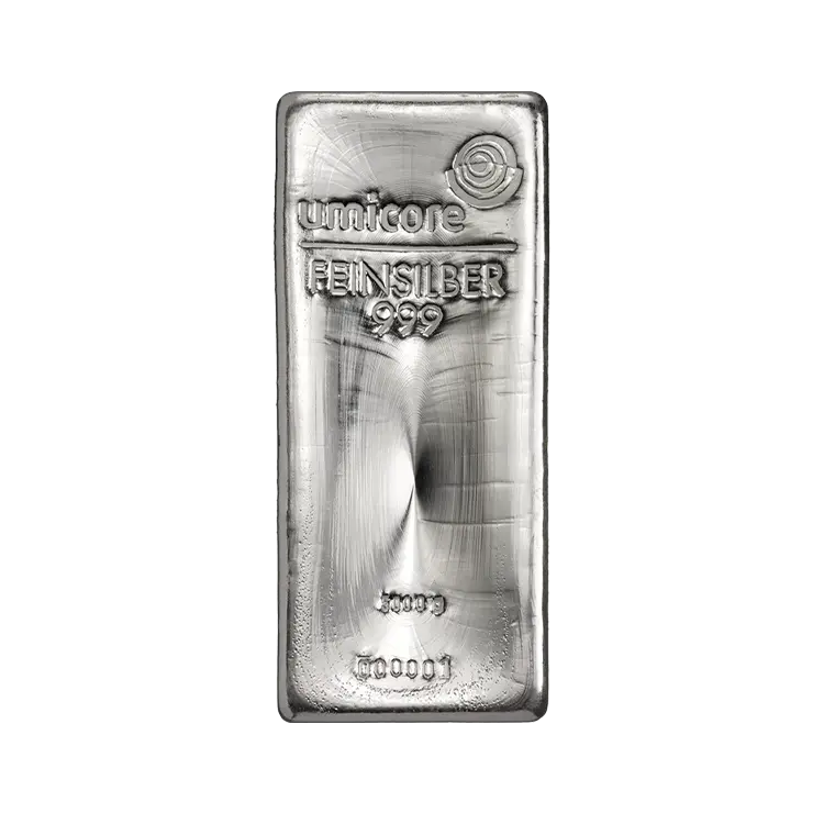 10 Kilo gram zilverbaar van Umicore. Wij kopen zilverbaren van 10 kilogram in die zijn geproduceerd door de LBMA-geaccrediteerde smelterij Umicore. Deze baren dienen te zijn voorzien van een logo van Umicore en een gewichtsaanduiding. Verder dienen deze baren in minimaal 99,9% fijn zilver geslagen te zijn.